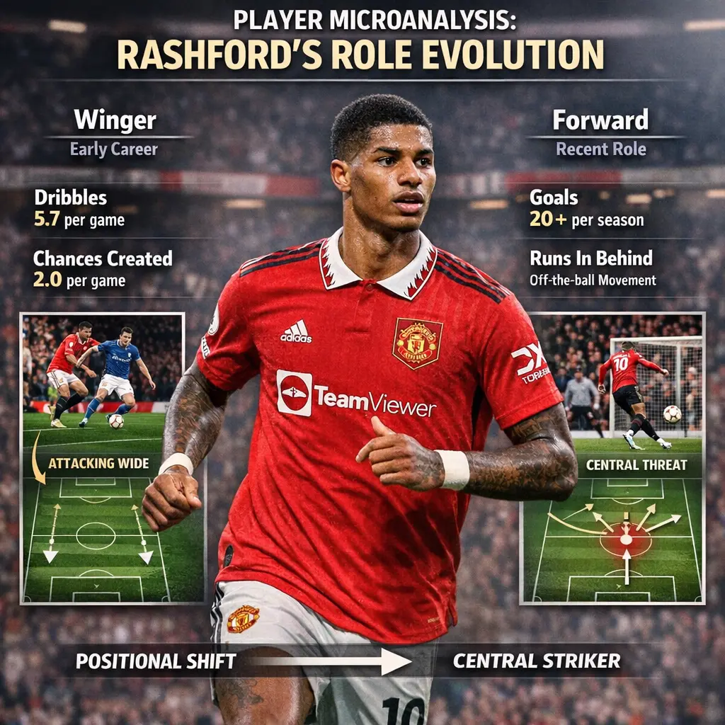 Player Microanalysis: Rashford’s Role Evolution at Manchester United F.C. refers to a detailed examination of Marcus Rashford’s changing responsibilities and playing style within the team. Over time, Rashford has shifted from being a traditional winger to adopting more versatile positions, including central roles and inverted winger duties. This evolution highlights his adaptability, tactical awareness, and growth as a key attacking threat, reflecting both his personal development and the team’s evolving strategies.