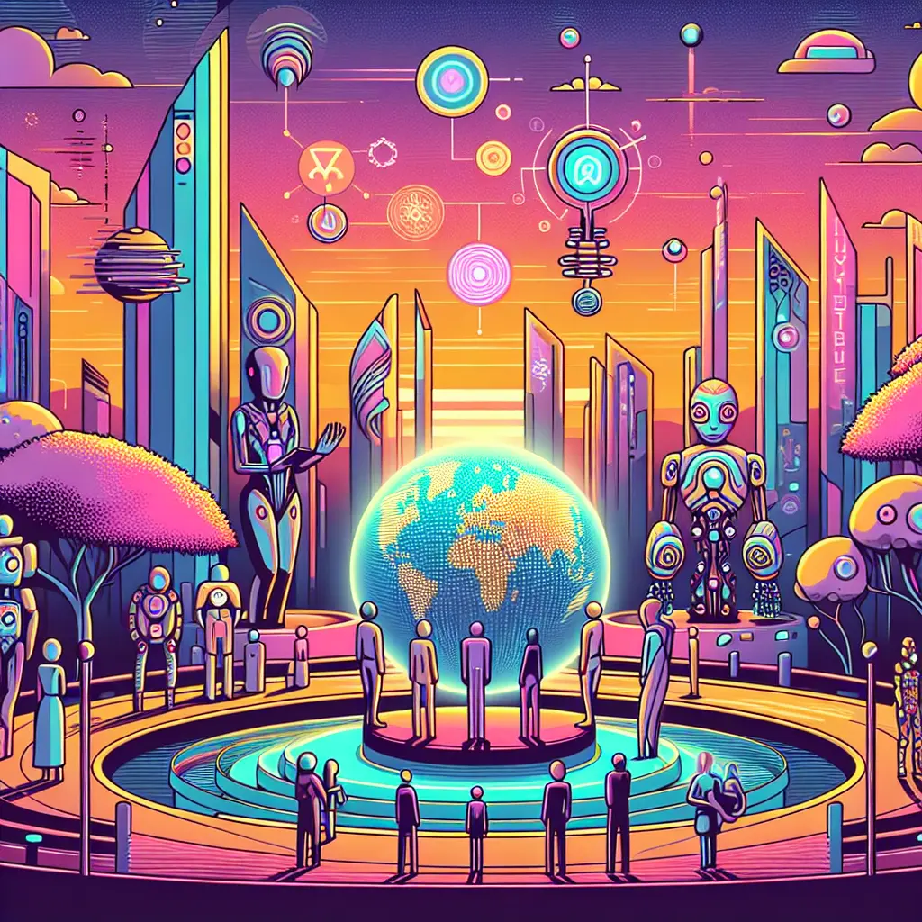 A future community where humans coexist with or are enhanced by advanced technologies, artificial intelligence, or biological enhancements.