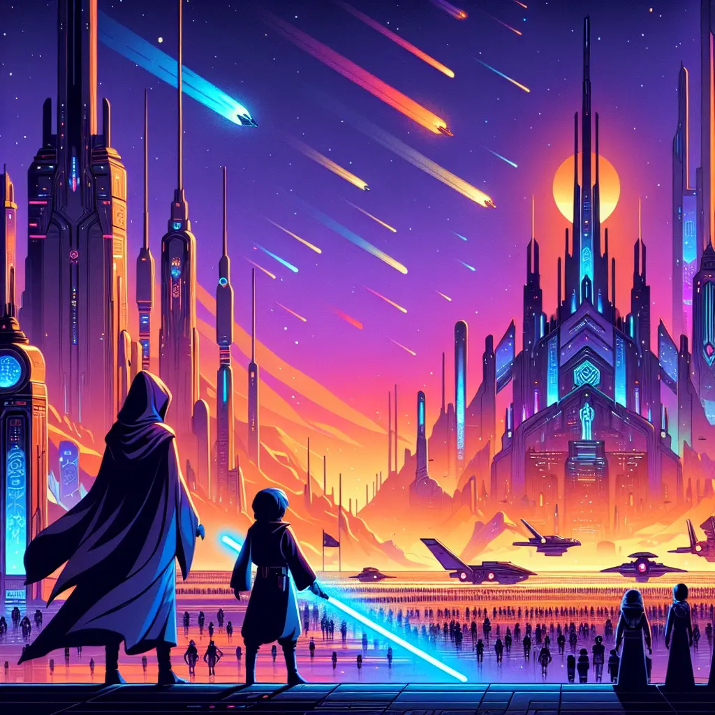 Anakin Skywalker’s rise to power, the fall of the Jedi Order, and the Republic’s transformation into the Galactic Empire during the Clone Wars.