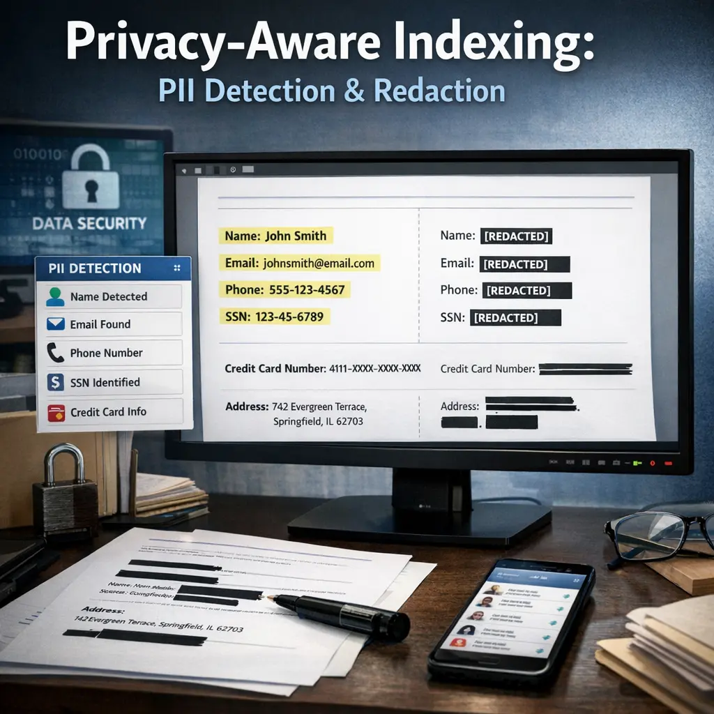 Privacy-Aware Indexing with PII Detection and Redaction in Retrieval-Augmented Generation (RAG) refers to the process of identifying and removing personally identifiable information (PII) from data before it is indexed or used in AI-driven retrieval systems. This ensures that sensitive user information is protected during data storage and retrieval, maintaining privacy and compliance while enabling effective information access and generation in RAG-based applications.