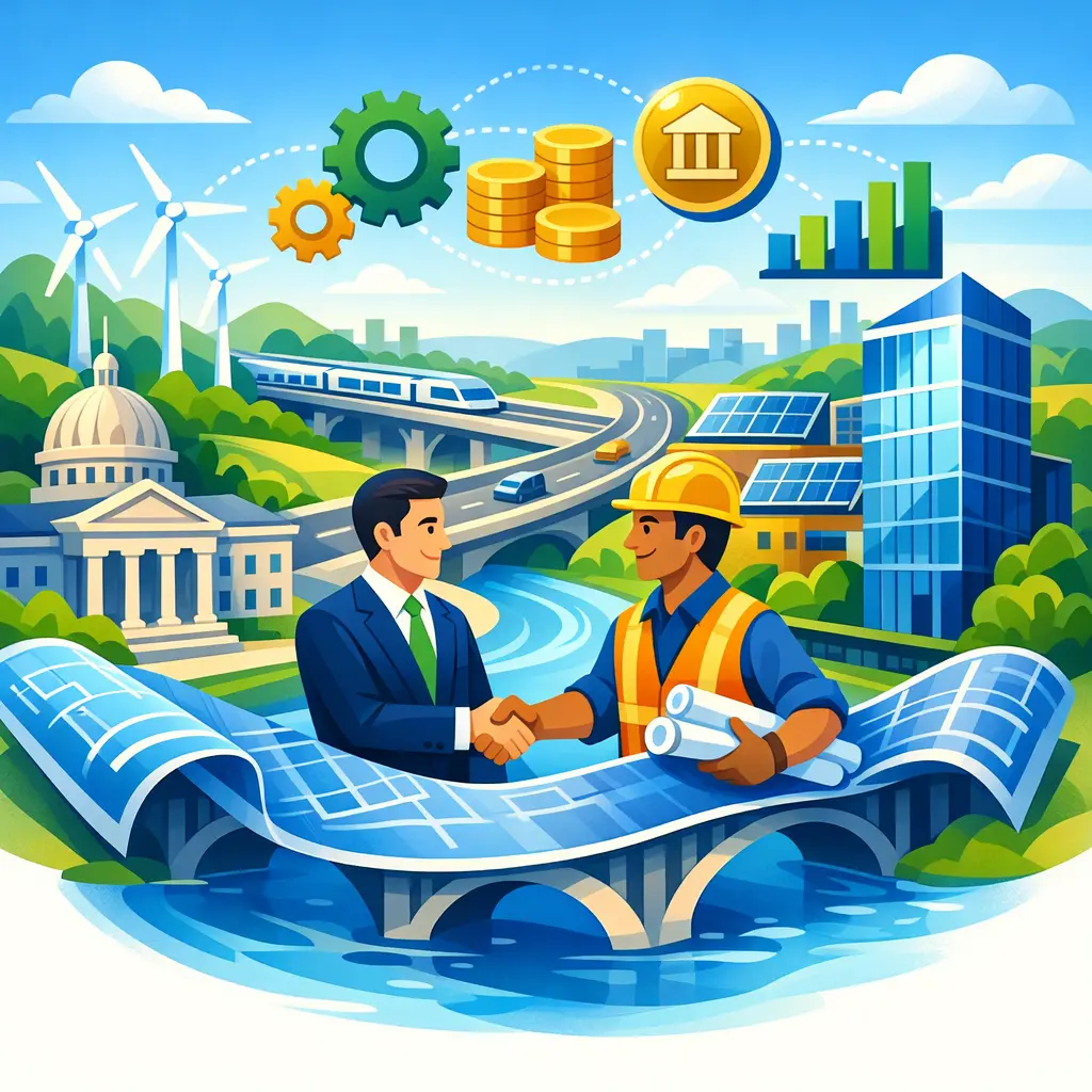 A long-term collaboration between government and private sector to design, build, finance, operate, or maintain infrastructure or public services, sharing risks and rewards.