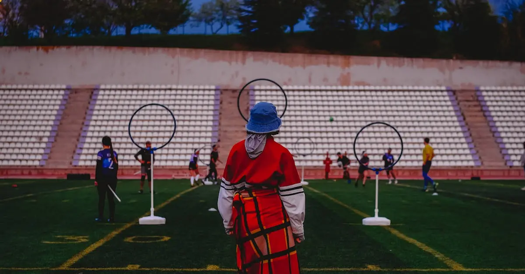 Quidditch is a fictional sport from the Harry Potter series, played by witches and wizards on flying broomsticks. The game involves four balls and seven players per team, each with specific roles such as Chasers, Beaters, Keeper, and Seeker. The objective is to score points by throwing the Quaffle through hoops, while avoiding Bludgers and trying to catch the elusive Golden Snitch, which ends the game and earns additional points.