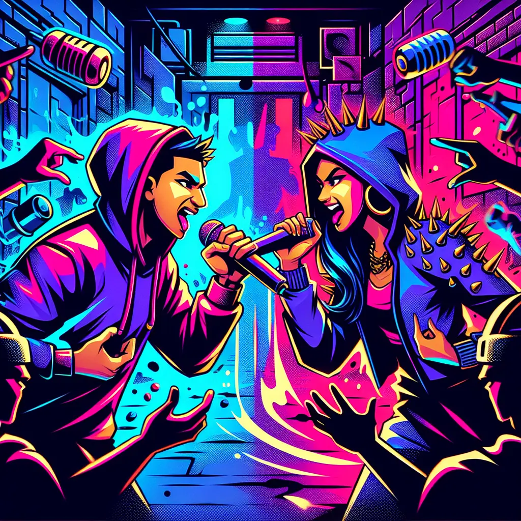 Rap battles, diss tracks, and rivalries are competitive elements in hip-hop culture where artists lyrically confront each other to showcase their skills, dominance, and creativity. Rap battles involve face-to-face verbal duels, while diss tracks are recorded songs targeting opponents with clever insults and wordplay. These rivalries often spark public interest, fuel artistic innovation, and sometimes escalate into legendary feuds, shaping the genre’s history and pushing artists to elevate their craft.