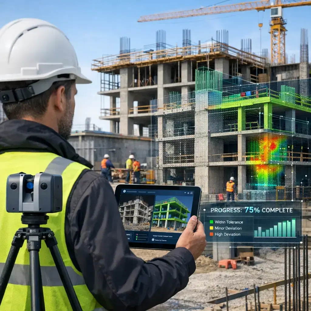 Reality Capture for Progress Monitoring (CV) utilizes computer vision technologies to collect and analyze visual data from construction sites. Through digital applications, images and 3D scans are processed to track project progress, compare actual conditions with design models, and identify discrepancies in real time. This approach enhances construction information management by enabling accurate, up-to-date documentation, improving decision-making, and increasing efficiency throughout the project lifecycle.