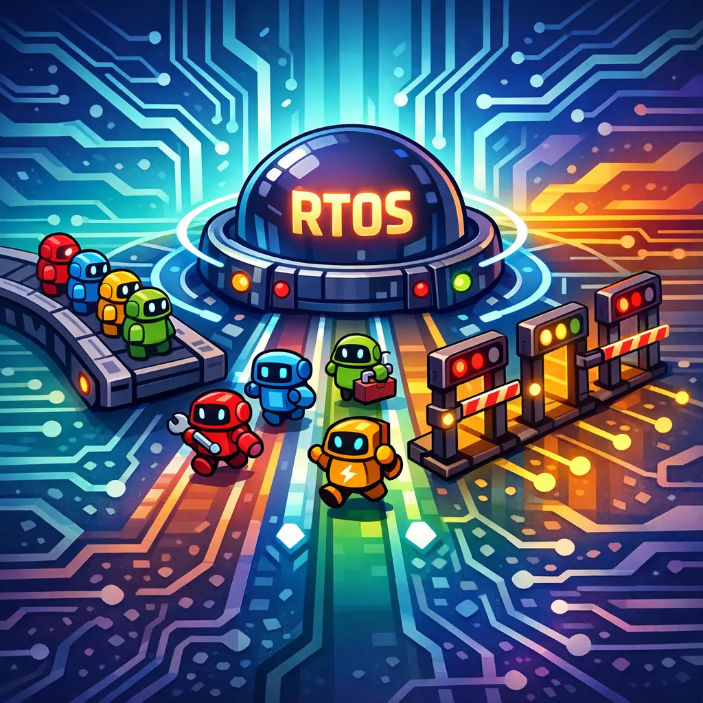 RTOS fundamentals involve core concepts such as tasks, queues, and semaphores, essential for managing concurrent operations in digital electronics and computing. Tasks are independent units of execution, enabling multitasking. Queues facilitate communication between tasks by allowing data to be safely passed and managed. Semaphores are synchronization tools used to control access to shared resources, preventing conflicts and ensuring proper task coordination within real-time systems.