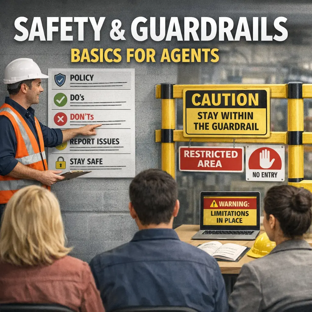 "Safety & Guardrails Basics for Agents (Agent Architecture)" refers to foundational principles and mechanisms designed to ensure that intelligent agents, such as AI systems, operate within defined boundaries. These safety measures and guardrails help prevent unintended behaviors, ethical violations, or harmful actions. In agent architecture, this involves implementing rules, constraints, and monitoring processes that guide agents' decision-making, ensuring alignment with human values, legal requirements, and organizational policies throughout their operation.