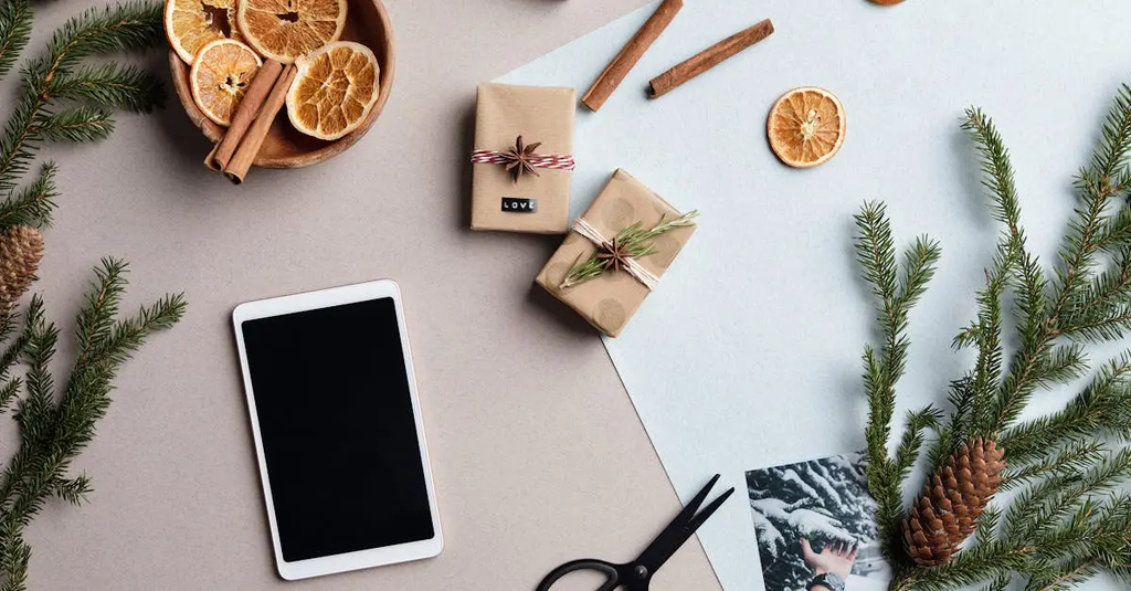 A season-themed backdrop, season-appropriate props, and festive decorations that match the chosen time of year.