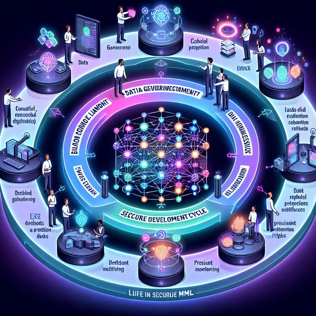 The Secure Software Development Framework (SSDF) by NIST provides guidelines for integrating security into each phase of the machine learning (ML) development lifecycle. It emphasizes identifying security requirements, implementing secure coding practices, conducting rigorous testing, and maintaining continuous monitoring. For ML, this includes securing data pipelines, model training, deployment, and updates, ensuring resilience against threats like data poisoning and model theft, and promoting accountability and transparency throughout the development process.