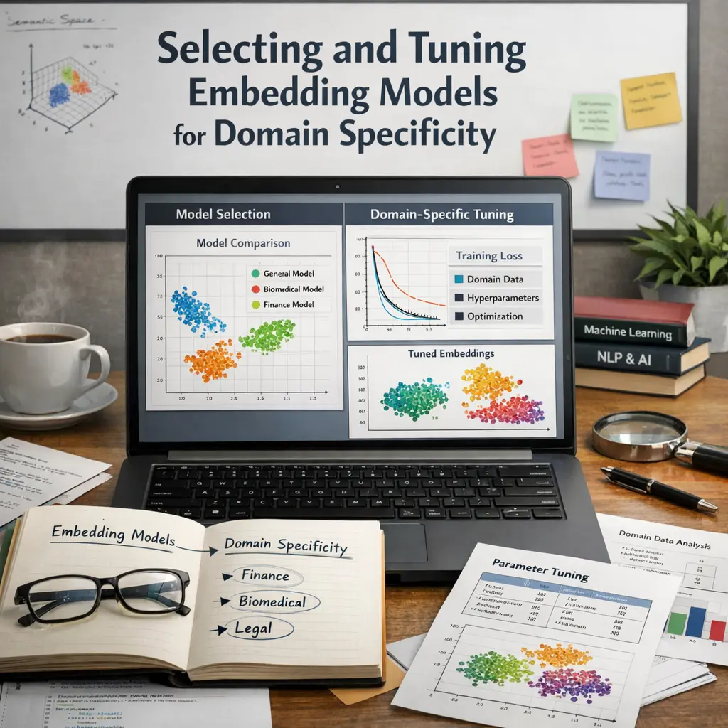 Selecting and tuning embedding models for domain specificity in Retrieval-Augmented Generation (RAG) involves choosing models that best capture the unique vocabulary, semantics, and context of a particular field. This process may include evaluating multiple embedding architectures, fine-tuning them on domain-specific datasets, and optimizing hyperparameters to enhance retrieval accuracy and relevance. Proper selection and tuning ensure that the RAG system retrieves and generates more contextually appropriate and precise information for specialized applications.