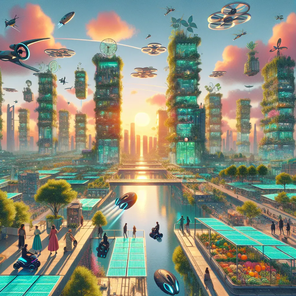 A hopeful sci-fi/design movement imagining futures powered by renewable energy, green spaces, and inclusive communities.