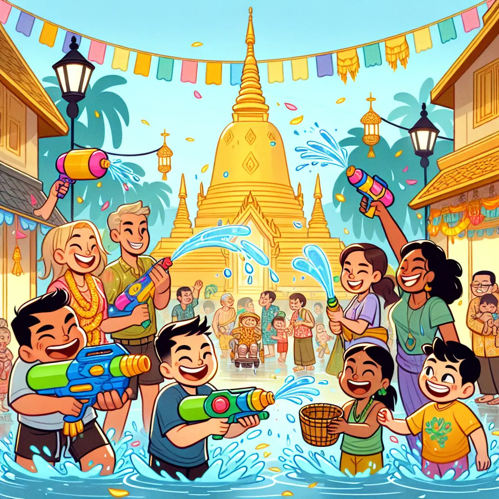 Water fights, pouring water on temples or Buddha statues, paying respect to elders, making merit at temples, and building sand pagodas.