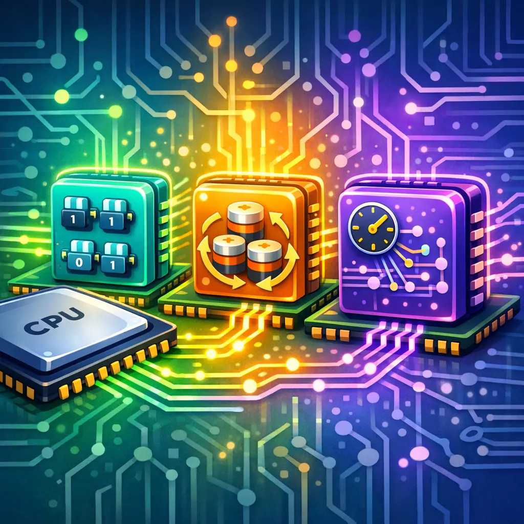 SRAM stands for Static Random-Access Memory. It uses flip-flops to hold each bit, so data remains while power is on and does not require refreshing. It’s fast but more expensive and lower density than DRAM.