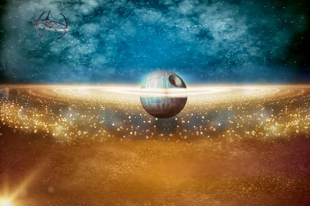 A large Imperial warship used as a capital ship and fleet command vessel, known for its wedge-shaped hull, heavy armament, and a complement of starfighters.