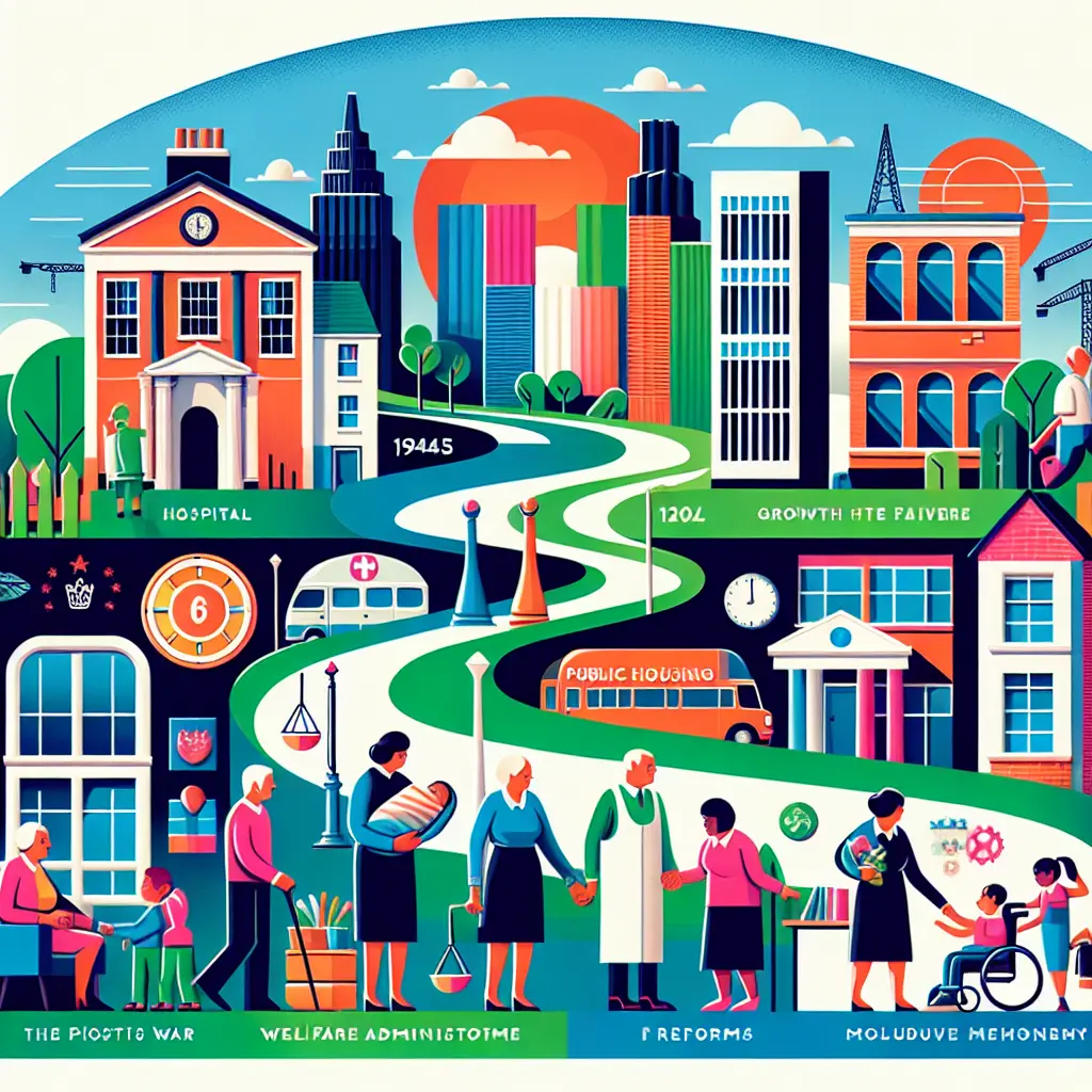 The evolution of the UK Welfare State from 1945 to the present reflects significant social and political change. Established after World War II to provide universal health care, social security, and housing, it expanded in the postwar decades. From the 1980s, reforms emphasized privatization, efficiency, and targeted support, reducing universal benefits. Recent years have seen further restructuring, with debates over austerity, welfare dependency, and the balance between state provision and individual responsibility.