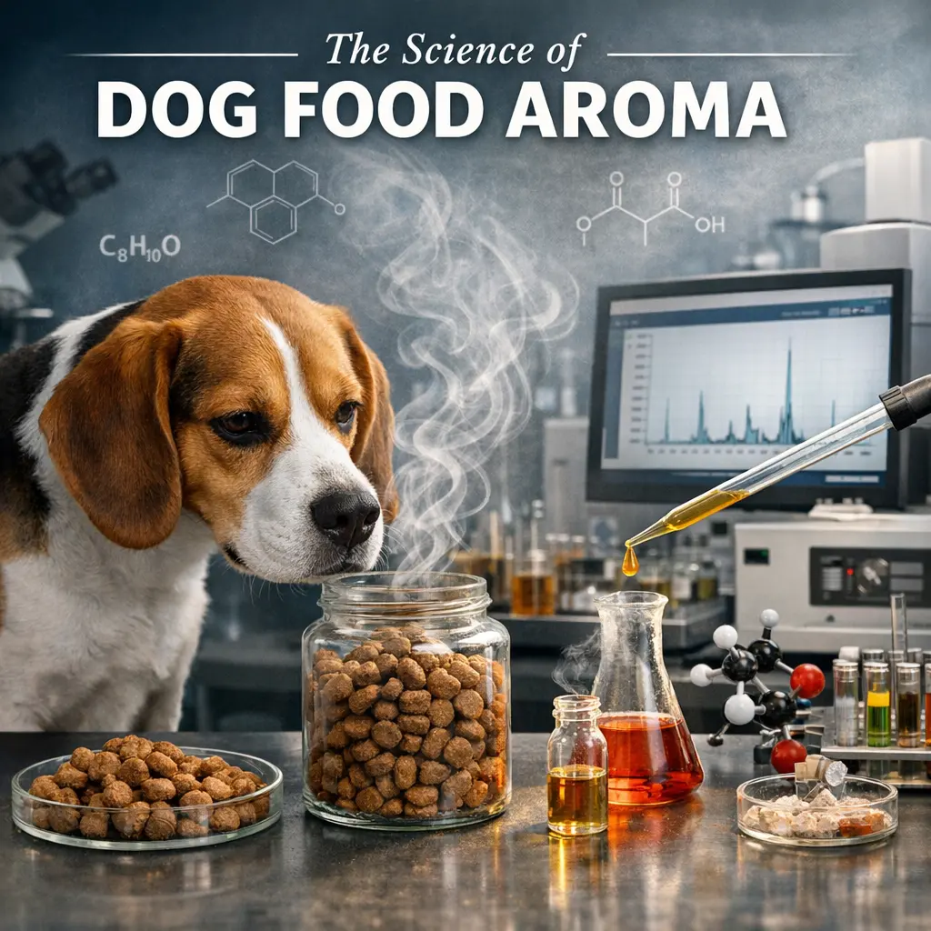 Dogs have about 300 million olfactory receptors and a larger olfactory bulb, so they detect aromas far more vividly than humans. This makes aroma a key driver of canine palatability.