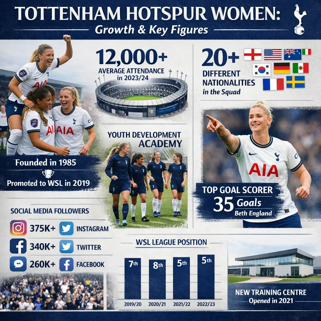 Tottenham Hotspur Women, the female team of Tottenham Hotspur F.C., has experienced significant growth since its founding in 1985. They earned promotion to the FA Women’s Super League in 2019, marking a new era of professionalism and visibility. Key figures include founders Karen Hills and Juan Amoros, influential players like Ashleigh Neville, and current manager Robert Vilahamn, all contributing to the team’s rising profile and competitive ambitions in English women’s football.