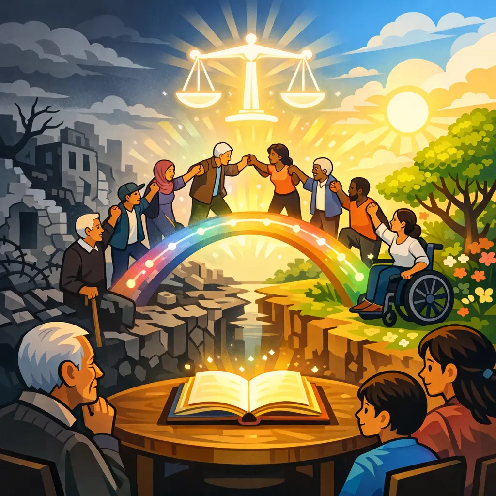 A long-term process of rebuilding trust and social cohesion between victims, perpetrators, and communities, supported by truth-telling, accountability, reparations, and reforms.