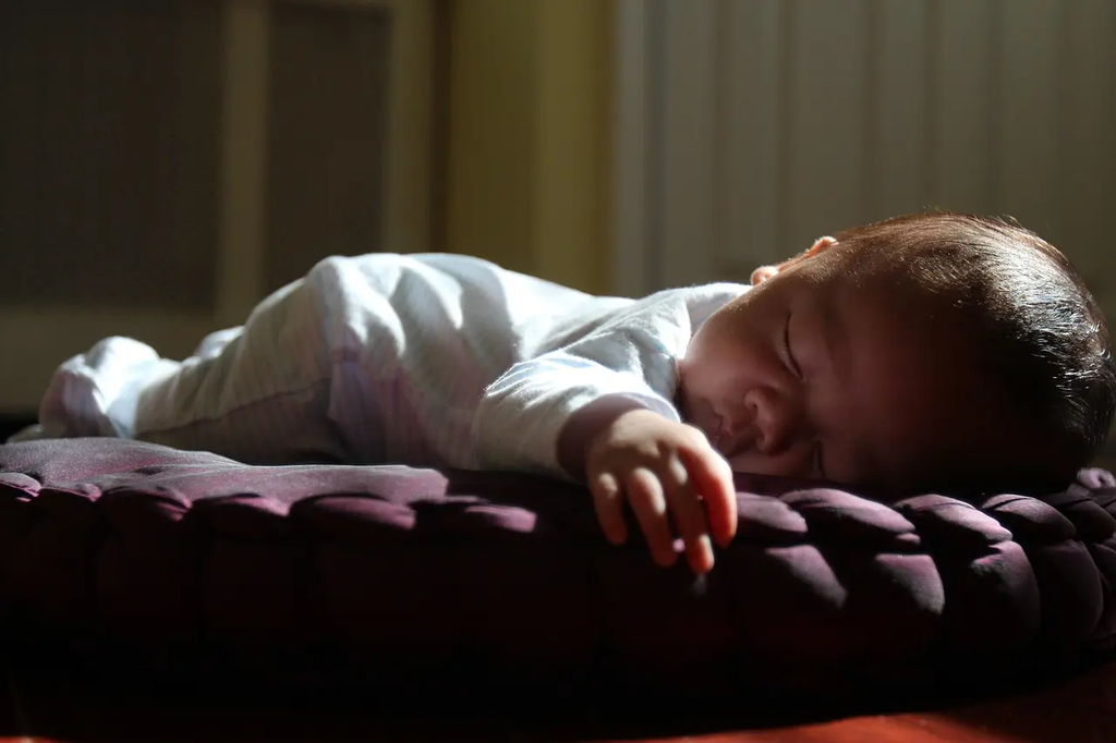 Offer short, supervised tummy-time sessions on a firm, flat surface several times a day. Use toys or a mirror to encourage turning the head, and avoid leaving the baby unattended on soft surfaces or elevated areas.