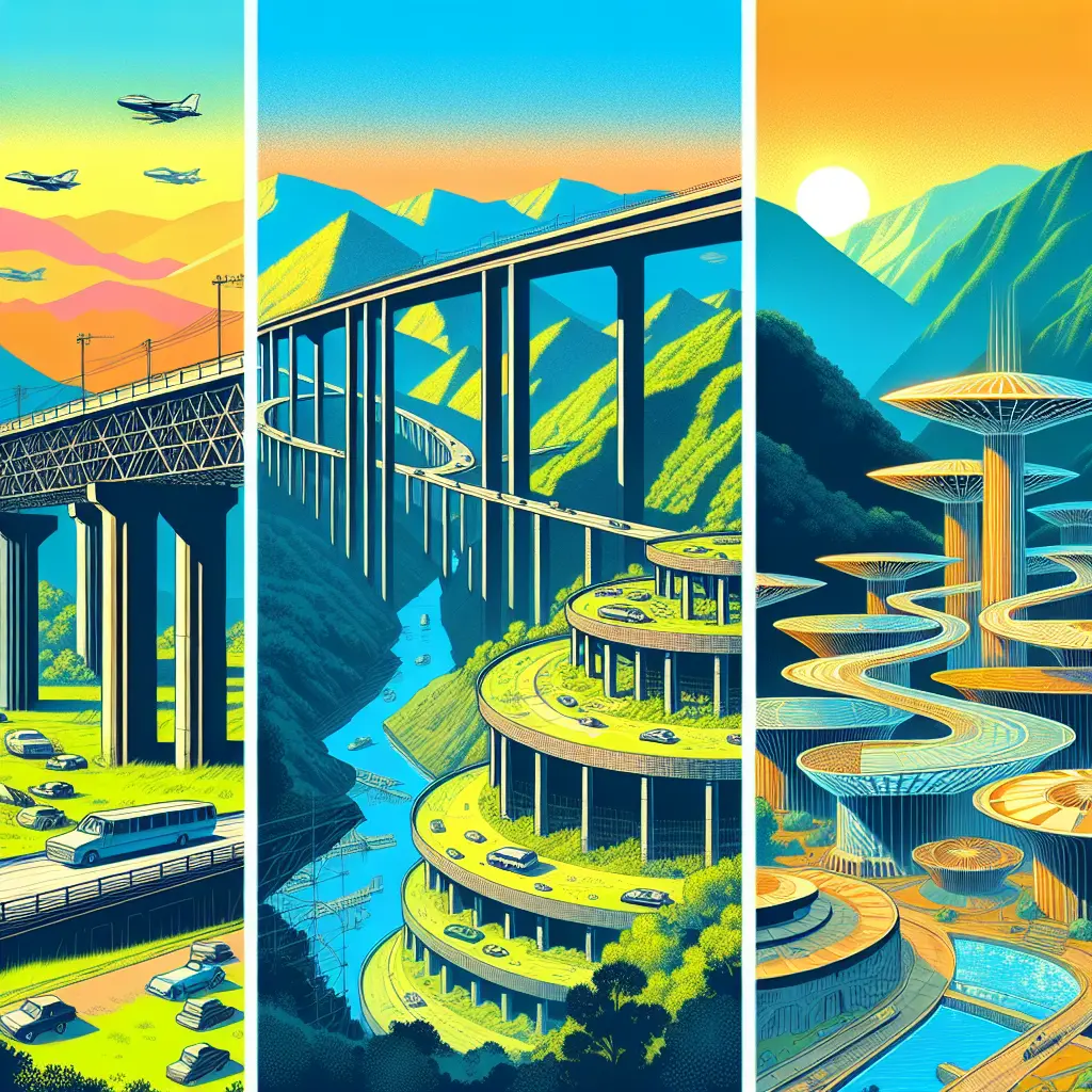 Proposed highways, large dams, and expansive parks that existed mainly on paper or early plans.